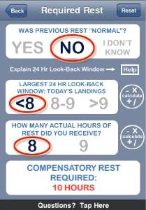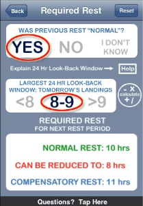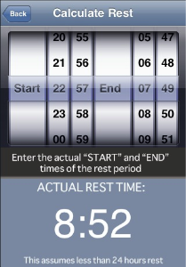 In order to determine Required Rest, certain flight times must be analyzed. An interface is provided to enter flight departure and arrival times, but if you simply want a quick "ballpark" answer you can bypass that detail and just enter your estimate (less than 8 hours, 8-9 hours, more than 9 hours) and get your answer.