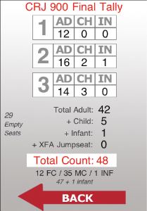 Tap "LOCK EMPTY SEATS" if you want to alter the count of adults and children without affecting the number of empty seats. If you choose to use this feature the recommended work flow is: First count everyone as an adult and then "LOCK EMPTY SEATS". Then add the correct number of children, and they will replace adults.